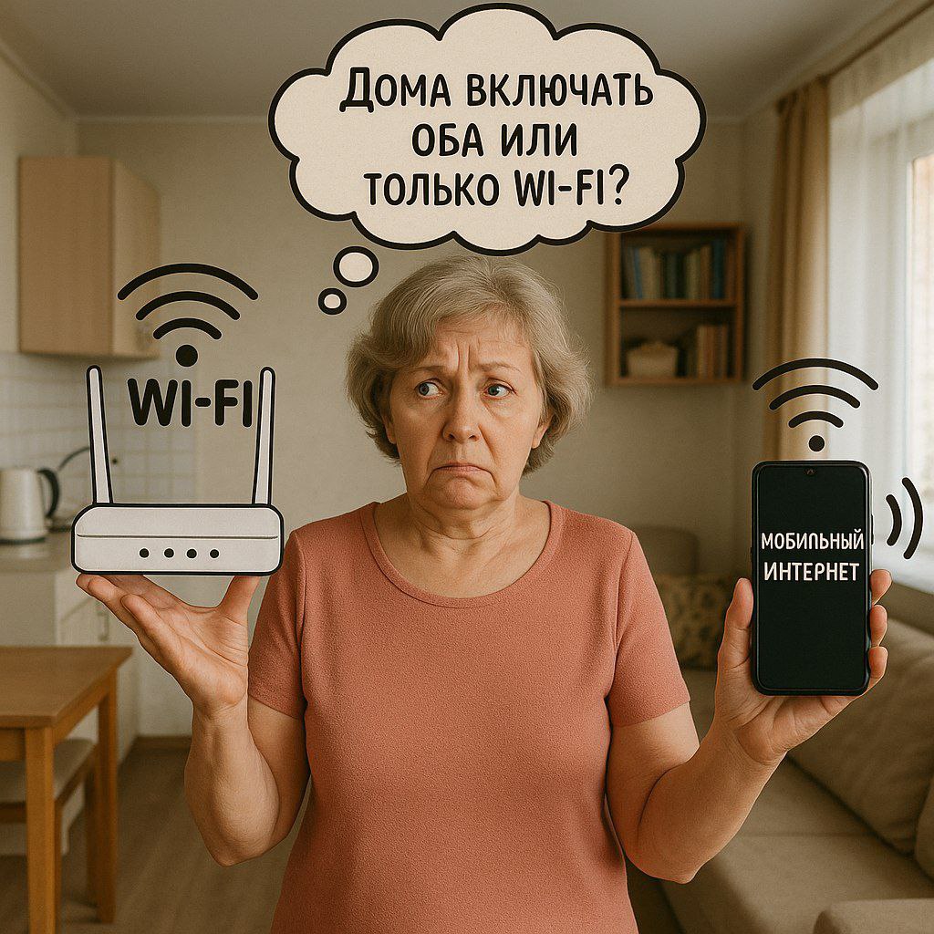 Вывод. Как дома, так и на улице нежелательно иметь включенными одновременно и моб. интернет и Wi-Fi. Дома – может расходоваться трафик моб. интернета, на улице – включенный Wi-Fi – еще быстрее разряжает батарею!